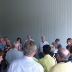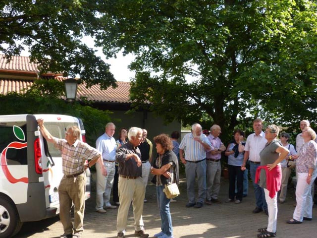 32 Mitglieder und Freunde des Clubs hatten sich zur Betriebsbesichtigung auf dem Hofgelände eingefunden und wurden vom Senior des Unternehmens zunächst begrüßt und mit dem Thema Apfel vertraut gemacht. Zunächst ging es direkt in die Plantage und direkt am „Objekt“ wurde man in die Kunst des Ertragsschnittes eingeweiht. Ein wahrlich interessantes Thema für die meisten Hobbygärtner unter den Teilnehmern.