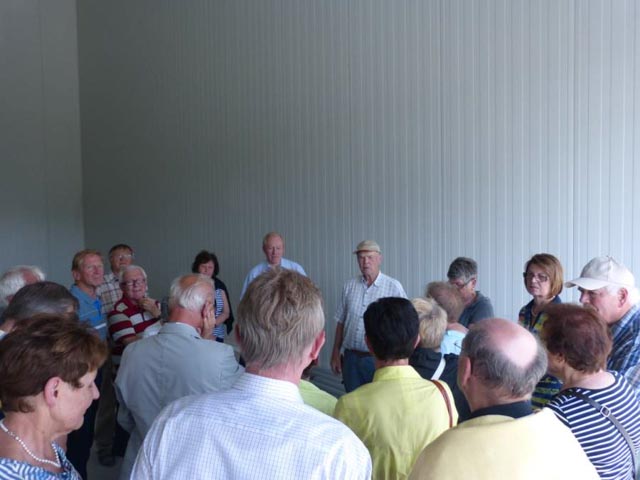 Im Anschluss daran ging es in die Lagerhalle, welche sich gerade im Um.- bzw. Neubau befand. Hier erfuhr man Wichtiges über fachgerechte Kühlung und Behandlung des eingelagerten Gutes um die Zeitspanne des sich Frischhaltens bis zur Vermarktung so lange als möglich hinauszuzögern.