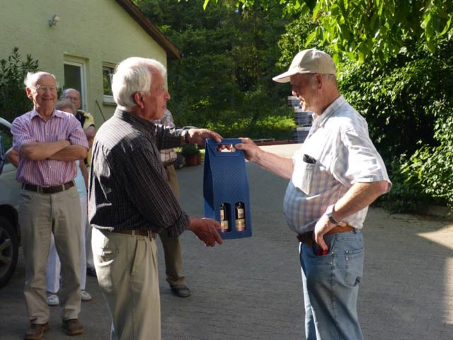 Mit Worten des Dankes und einem Weinpräsent dankte der stellvertretende Vorsitzende des AMC dem Seniorchef für die überaus engagiert und leidenschaftlich vorgetragene Hofführung.